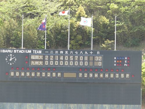 福岡大32-0九州大(試合終了)スコアこそこうなりましたが、両チーム選手起用とか。大半の選手起用の両チーム死力を尽くした試合だったと思います。お疲れ様でした…。 pic.twitter.com/cMnjDwLBCH — いりりん (@nqa22154) 2021年4月25日 あと、福岡六大学野…